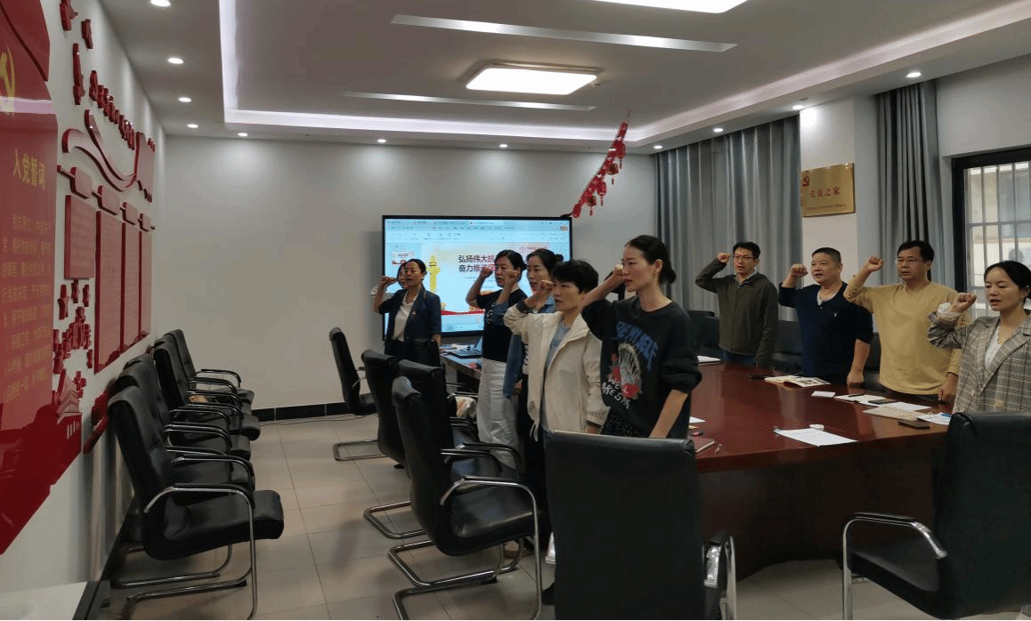全体党员重温入党誓词,王雪雪同志领誓;王方同志领读《党章》第二章《党的组织制度》。