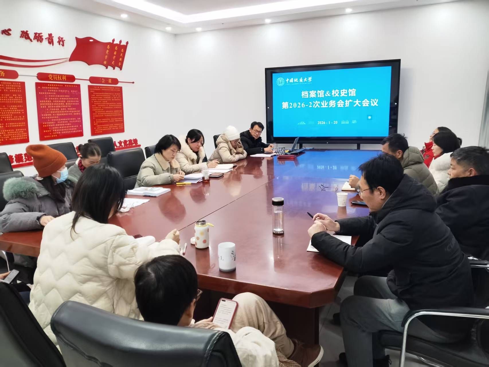 2026年1月20日下午,档案馆&校史馆在档案馆会议室召开了第2026-2次业务会(扩大)会议暨寒假工作布置会。图书档案与文博部副部长刘治国主持会议,档案馆&校史馆全体职工参加会议。